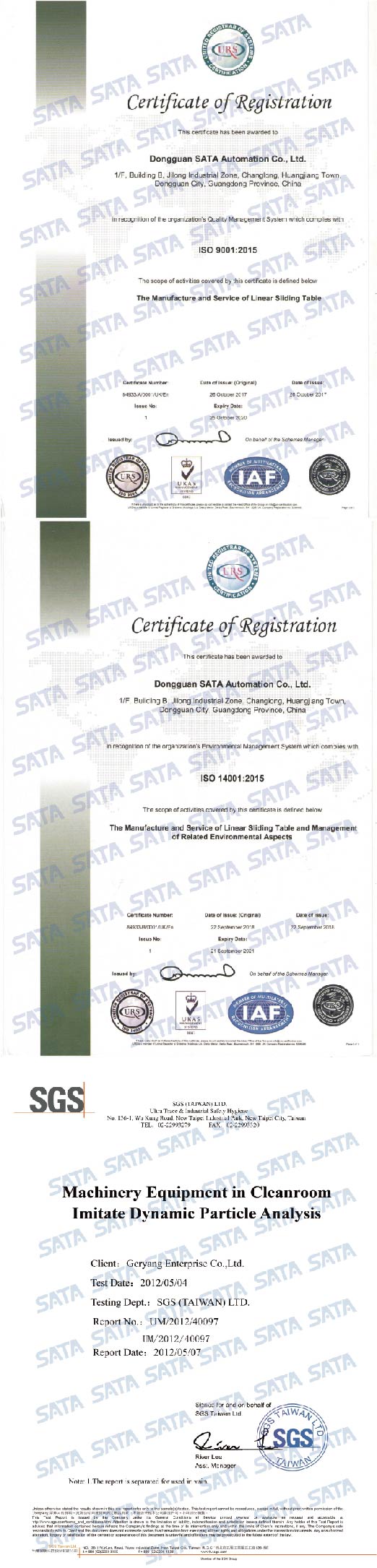 SATA經過ISO 9001跟14001國際認證,並經過SGS認證