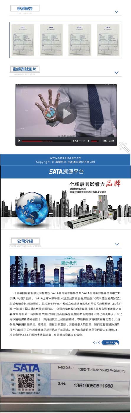 SATA首創業界先例,每一滑台均試車過後才出廠,確保運轉無問題;每台均有試車之影片,